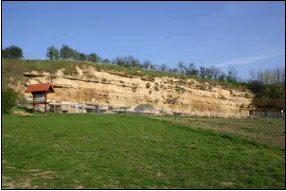 DieehemaligeSandgrubeamnordöstlichenOrtsrandvonWeinheimisteines seinerWahrzeichen.InFachkreisenistdieStellewegenderVielfaltundguten ErhaltungderFossilienseitetwa150Jahrenweltweitbekannt.DielanggestreckteSandgrubenwandistein eindrucksvollesNaturdenkmal,dasdieAnlagerungdervomFestlandeingetragenenSandeverdeutlicht.ZurZeit derSandablagerungenwardieKüstedesFestlandeseinigeZehnerMeterhangaufwärtsgelegen.Einigeder SandlagenwurdennachihrerAblagerungdurchfeineMineral-Ausfällungenverkittet.Siewitternnunals widerstandsfähigereBänkestärkerheraus.InmehrerenPartiensindzusammengespülteweißlicheSchalenvon Meeresmuschelnund-schneckenzuerkennen.AberauchSpurenvonTierensindvorhanden,derenRestenicht erhaltensind:ImmittlerenoberenTeilderWandwitternknotigeGebildeausdemschwachverfestigtenSand.Es sindnachträglichverfüllteGrab-undWohnbauten,dievermutlichvonKrebsenoderWürmernangelegtwurden.Im rechtenDrittelderWandfallenovaleGebildeauf,diesichineinerverfestigtenLageinetwa3mHöhebefinden.Es handeltsichumQuerschnittevonSeekuhrippen,diesichvermutlichsenkrechtzurOberflächeindieWandhinein fortsetzten.Währendderfrüheren AbbauarbeitenkameineVielzahlanFossilienzutage.Forschungsarbeiteninden60erund70erJahrenergaben,dassessichbei dieser Lokalität vermutlich um das artenreichste Vorkommen dieser Küstensedimente handelt.